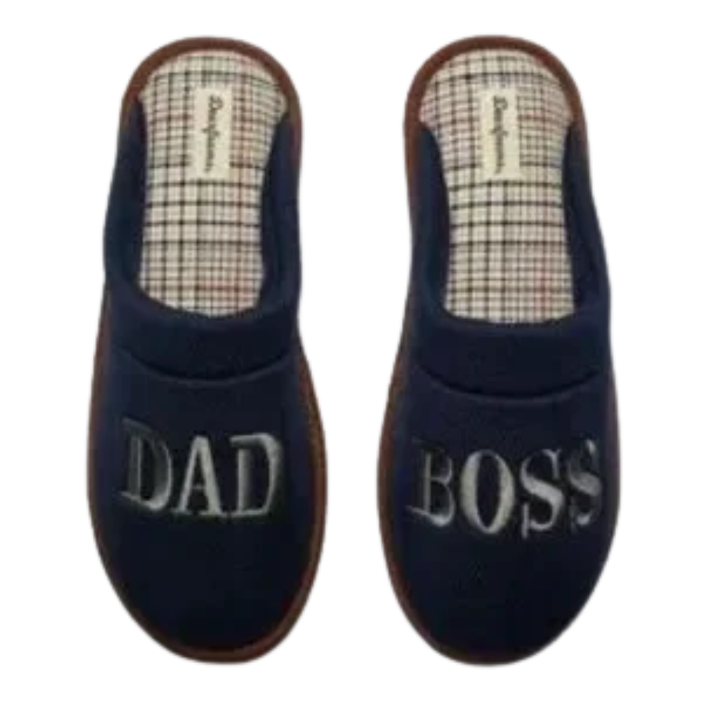 Dluxe by Dearfoams Men’s Memory Foam Dad Boss Slide Slippers – Navy